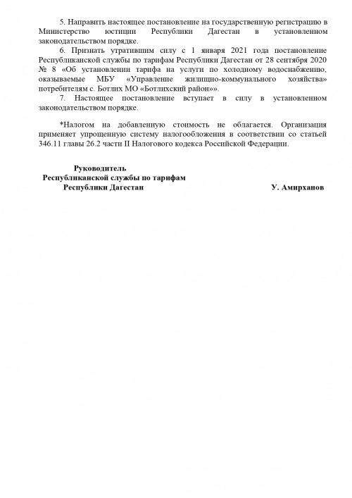 ТАРИФ по водаснабжению и водоотведению
